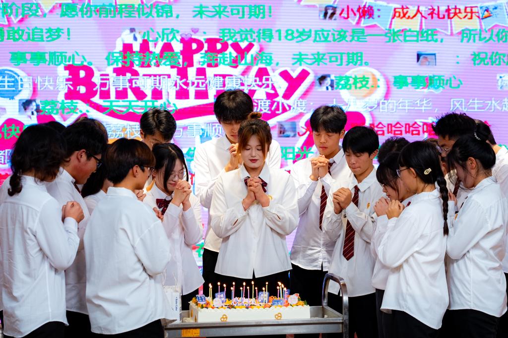 紧接着,切蛋糕环节将现场气氛推向了高潮。在生日快乐歌的旋律中,同学们共同分享着甜蜜的蛋糕,寓意着未来的生活将充满甜蜜与幸福。