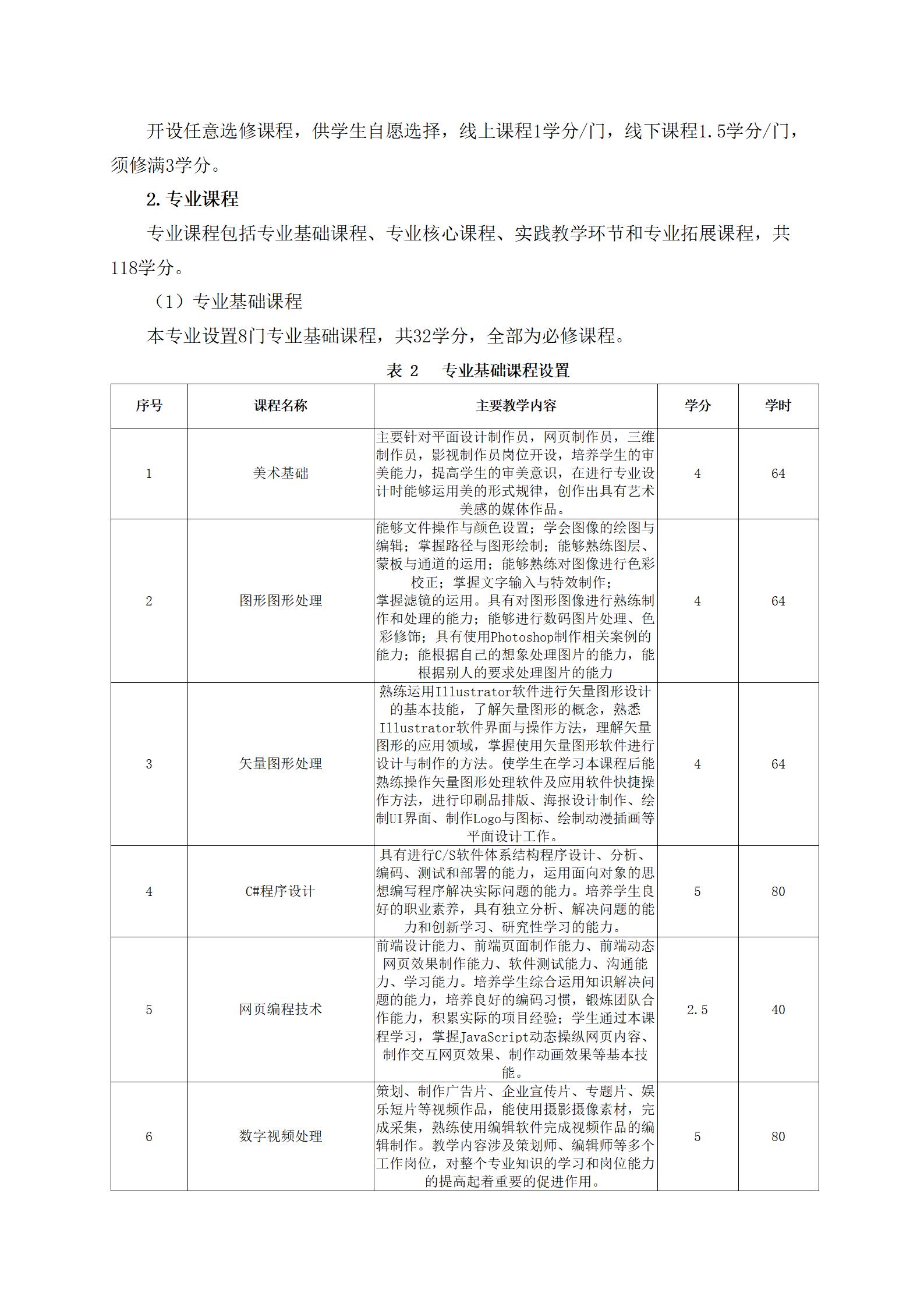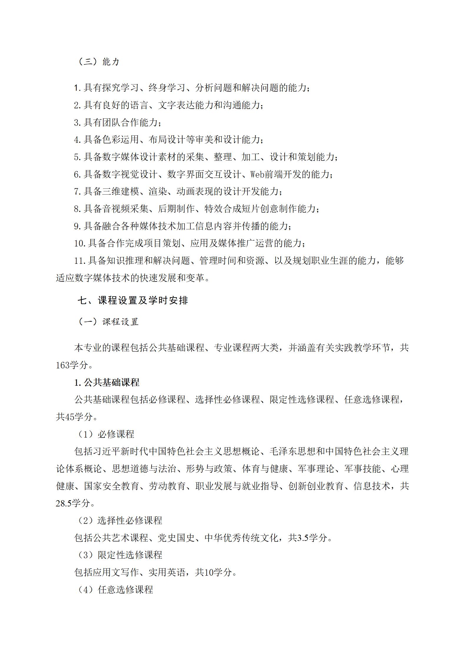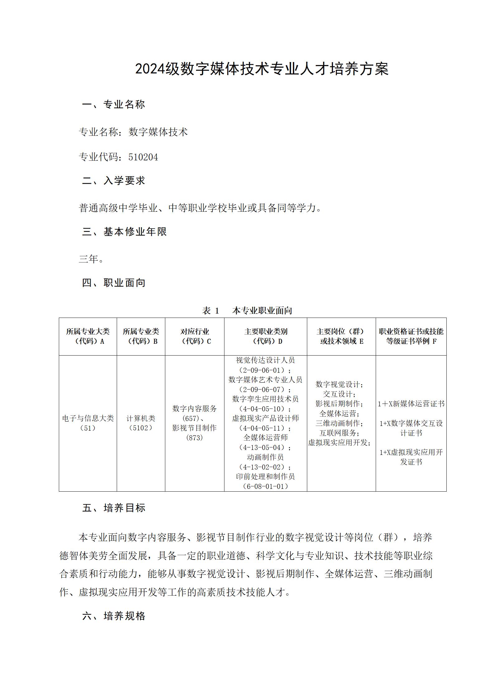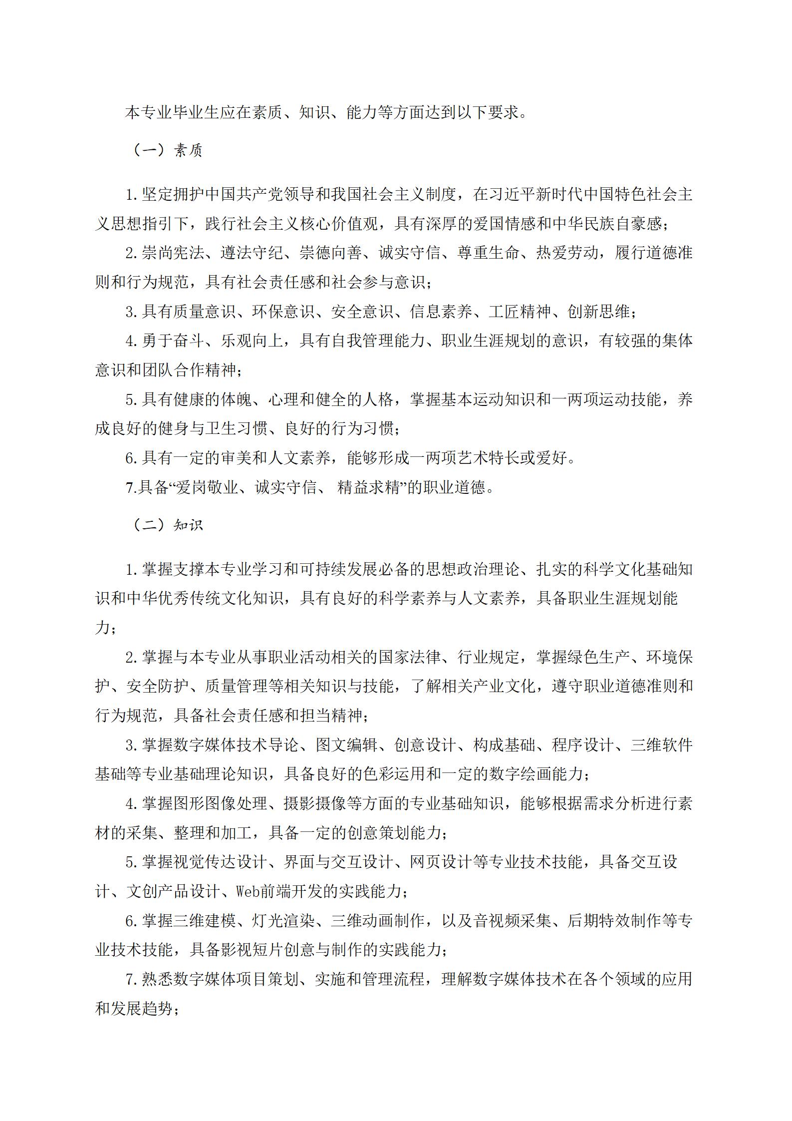 专业人才培养目标:数字媒体技术专业面向数字内容服务、影视节目制作行业的数字视觉设计等岗位(群),培养德智体美劳全面发展,具备一定的职业道德、科学文化与专业知识、技术技能等职业综合素质和行动能力,能够从事数字视觉设计、影视后期制作、全媒体运营、三维动画制作、虚拟现实应用开发等工作的高素质技术技能人才。