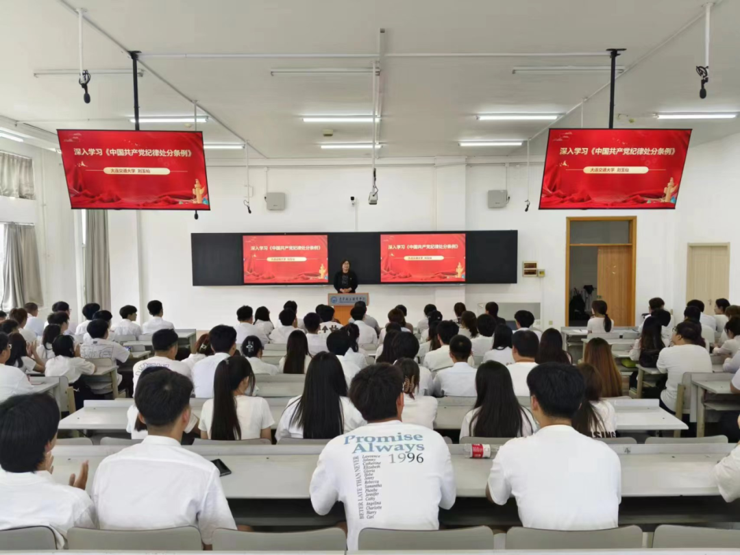 为进一步推进党纪学习教育走深走实,深入学习贯彻《中国共产党纪律处分条例》,严格规范党组织和党员行为,7月2日下午,bevitor伟德国际1946党总支邀请大连交通大学马克思主义公司教授、硕士生导师刘玉仙作《深入学习中国共产党纪律处分条例》专题讲座。bevitor伟德国际1946党总支教师党员、22级员工预备党员以及全体入党积极分子参加。