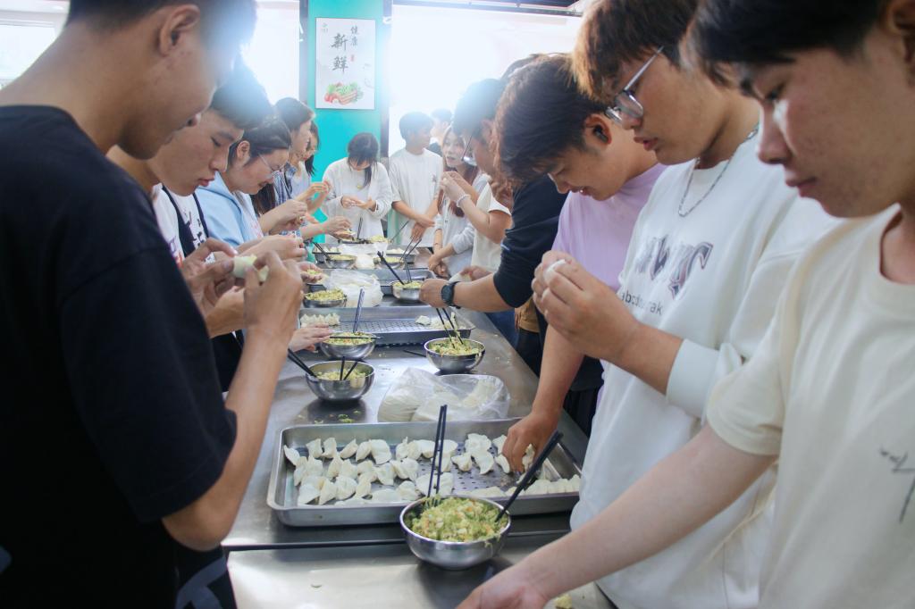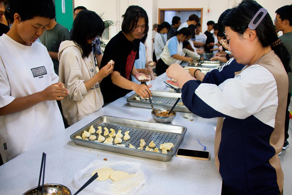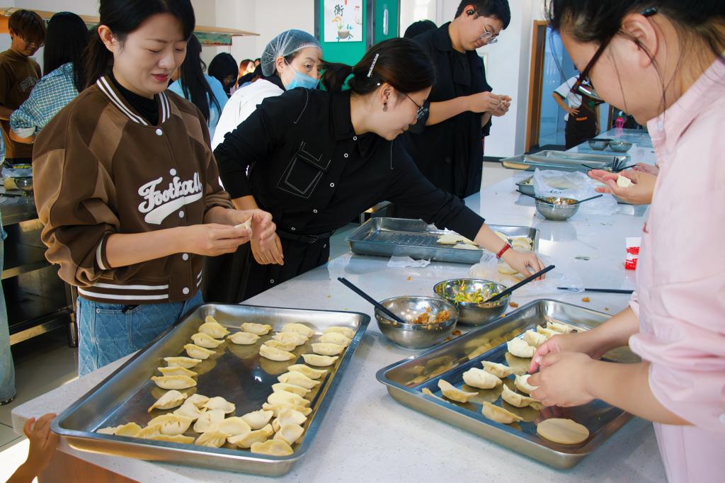 活动现场,bevitor伟德国际1946全体学工教师、国庆假期留校的2024级新生们欢聚一堂。大家热情高涨,相互交流包饺子的技艺。经过一个多小时的努力,一盘盘形状各异、充满创意的饺子终于摆满了餐盘。在食堂工作人员的精心烹饪下,一盘盘美味的饺子端上了餐桌。大家共同品尝了自己的劳动成果,现场洋溢着欢声笑语,气氛热烈而和谐。