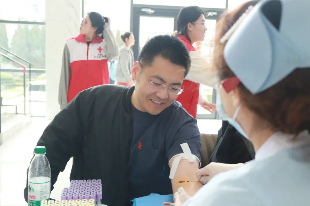 献血过程中,医护人员操作熟练、态度亲切,他们一边细心地为老师、同学们采血,一边耐心地解答大家的疑问,提醒同学们献血后的注意事项。一袋袋殷红的血液被采集起来,这些血液不仅是生命的源泉,更是同学们爱心的见证。每一位献血的同学都面带微笑,眼神中透露出坚定与自豪,他们用实际行动诠释了无私奉献的精神。