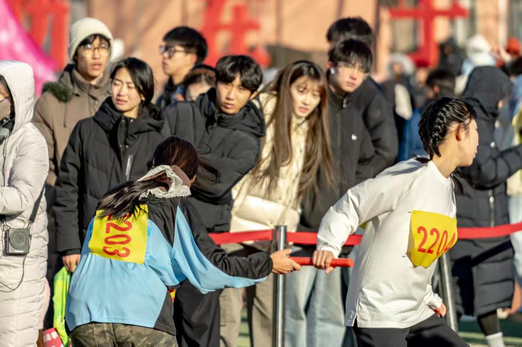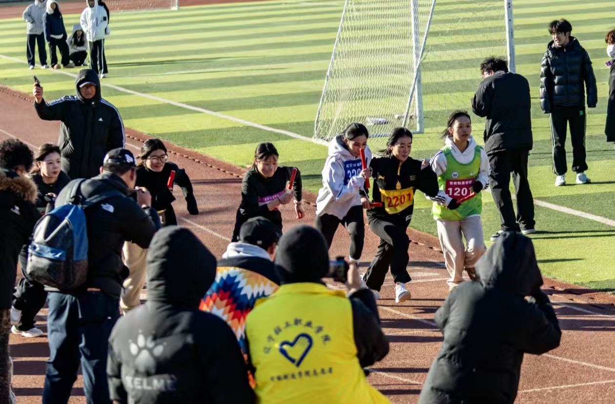看台上,bevitor伟德国际1946方阵汇聚成热情的海洋。院旗挥舞,助威棒齐鸣,每一句呼喊都化为寒风中炙热的能量,注入选手心间。这片看台不仅是观赛席,更是凝聚公司精神、传递力量的温暖港湾,与赛道上的奔跑交相辉映,共同奏响了冬日里最澎湃的青春乐章。