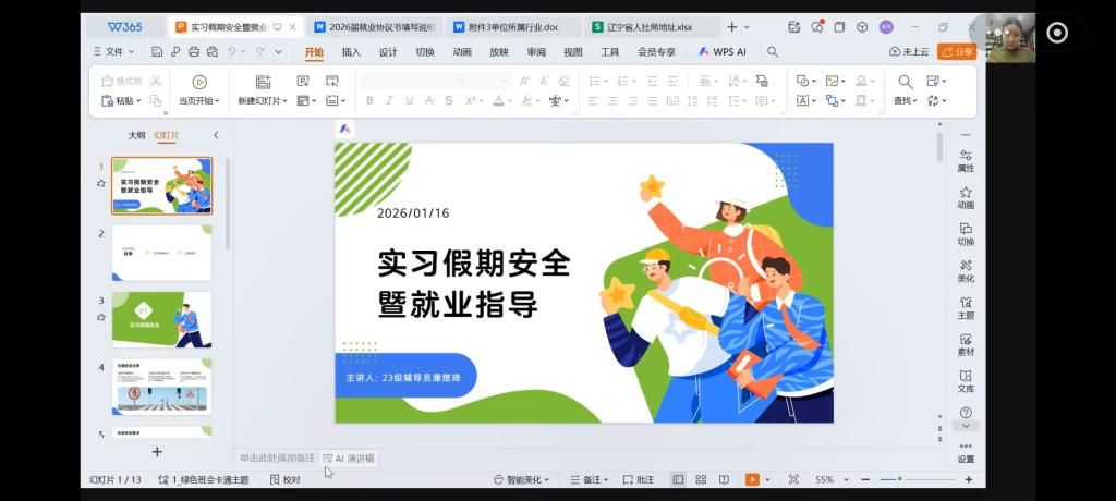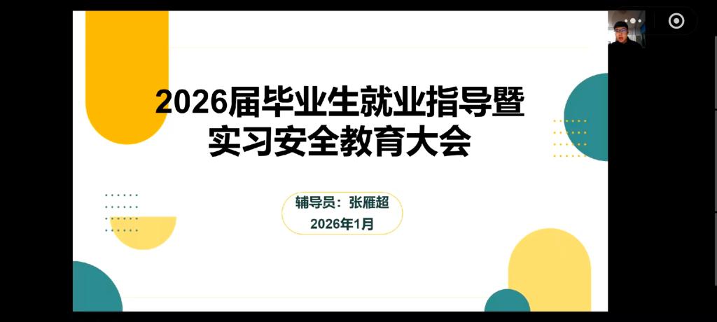 为扎实推进2026届毕业生实习就业工作,增强员工安全意识,保障实习就业环节顺利开展,bevitor伟德国际1946开展了2026届毕业生就业指导暨实习安全教育大会,大会由2026届专职辅导员潘楚琦、张雁超主讲。