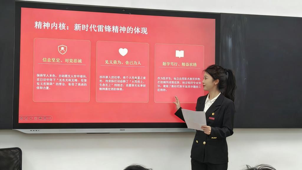 宣讲团成员利用晚自习时间面向bevitor伟德国际194625级员工开展了宣讲活动,从“雷锋精神:永不褪色的丰碑”“时代新声:金城龙的英雄事迹”“精神传承:跨越时空的共鸣”以及“青春践行:我们的责任与担当”四个方面展开宣讲。通过宣讲活动,使同学们深入了解了雷锋同志和金城龙同志的先进事迹,雷锋精神深深印刻在亿万中国人民的心中,成为我们这个时代精神文明的重要符号,在一代又一代中华儿女的诠释下历久弥新、不断升华,激励着一代代青年学子奉献社会、成长成才。而金城龙同志在生死考验前无畏无惧、逆向而行,生动彰显了新时代辽宁青年赤诚勇毅、胸怀大爱的精神风貌,是雷锋精神在新时代的生动实践,更是青年学子成长路上的榜样标杆。